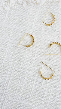 Brass wire threader earrings with tiny brass nugget beads wire-wrapped along the curve. Simple and delicate - and everyday wear.