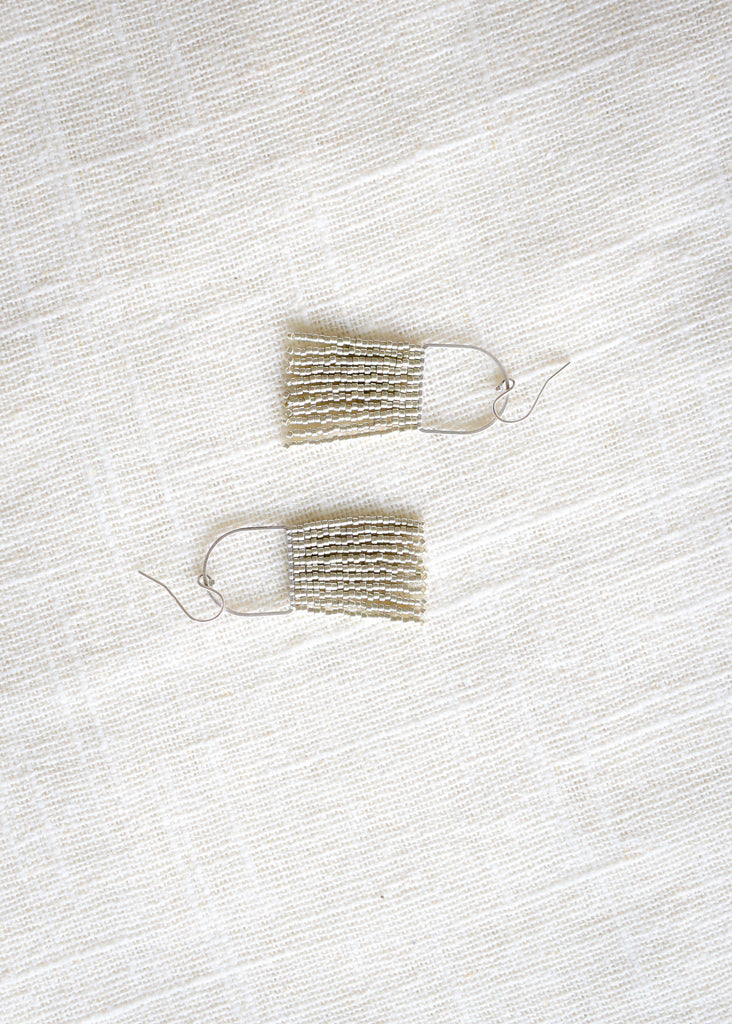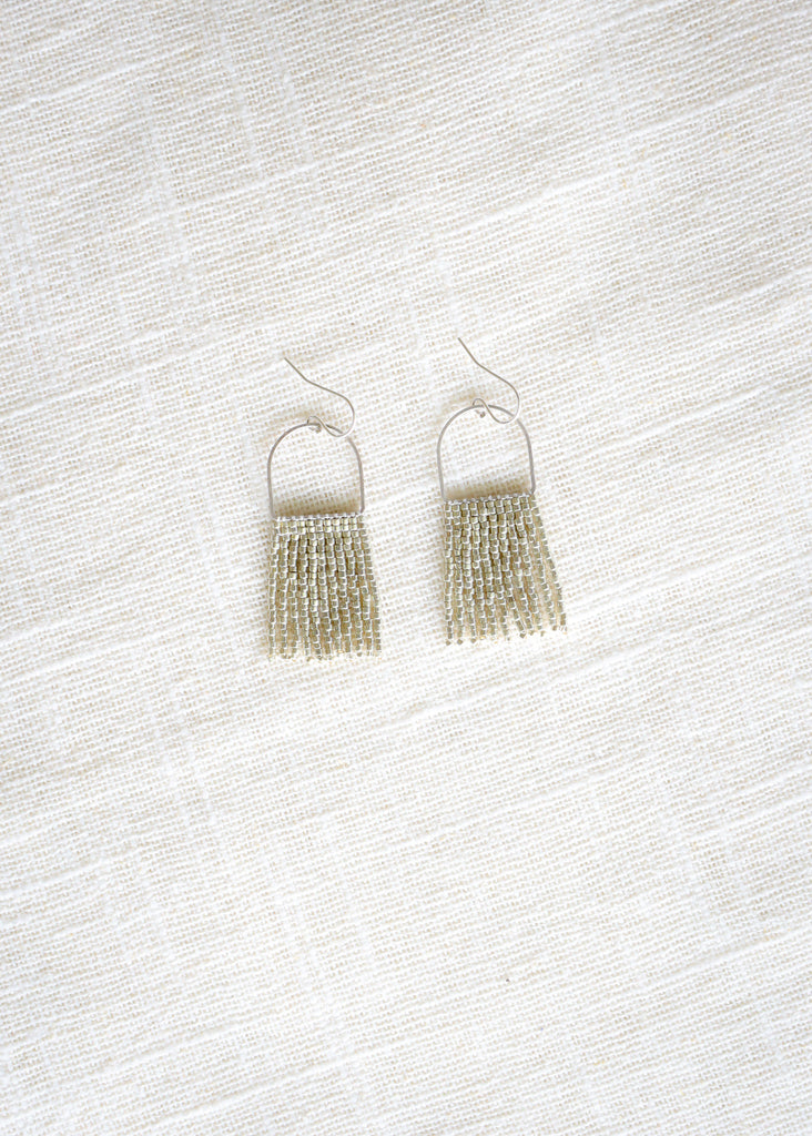 The Mini Drop Fringe, but in silver?! What's not to love? This style is the perfect throw-on for that extra something-something. These silver-plated earrings are handwoven with beautiful silver seed beads.
