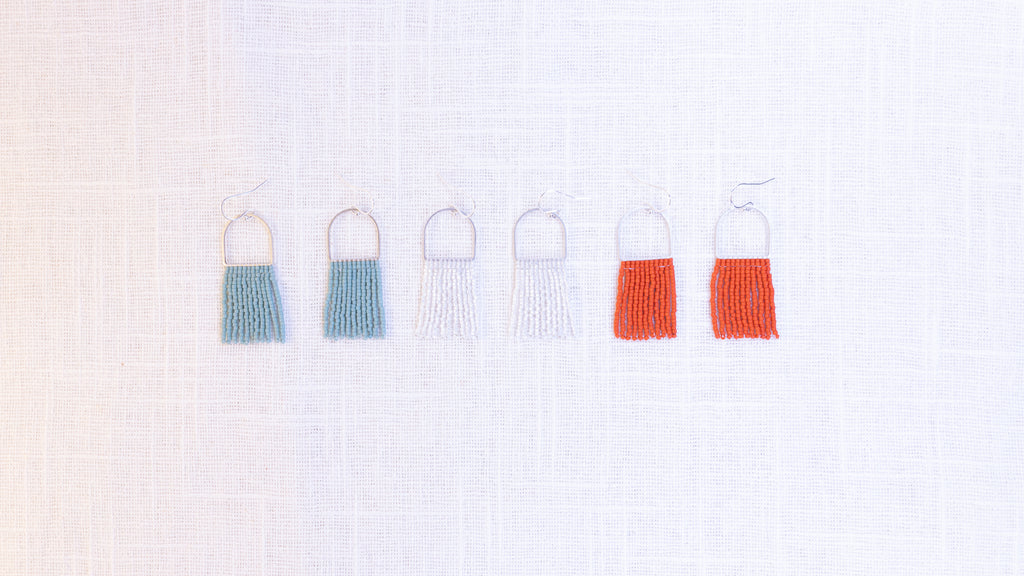 The Mini Drop Fringe, but in opal?! Oh, baby! This style is the perfect throw-on for that extra something-something. Your choice of silver-plated or brass hardware.