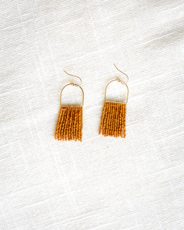 This pumpkin orange color might scream Fall, but it's one of my favorites to wear - all year round. This style is the perfect throw-on pair for that extra something-something. Your choice of brass or silver-plated earrings handwoven with pumpkin-colored seed beads.